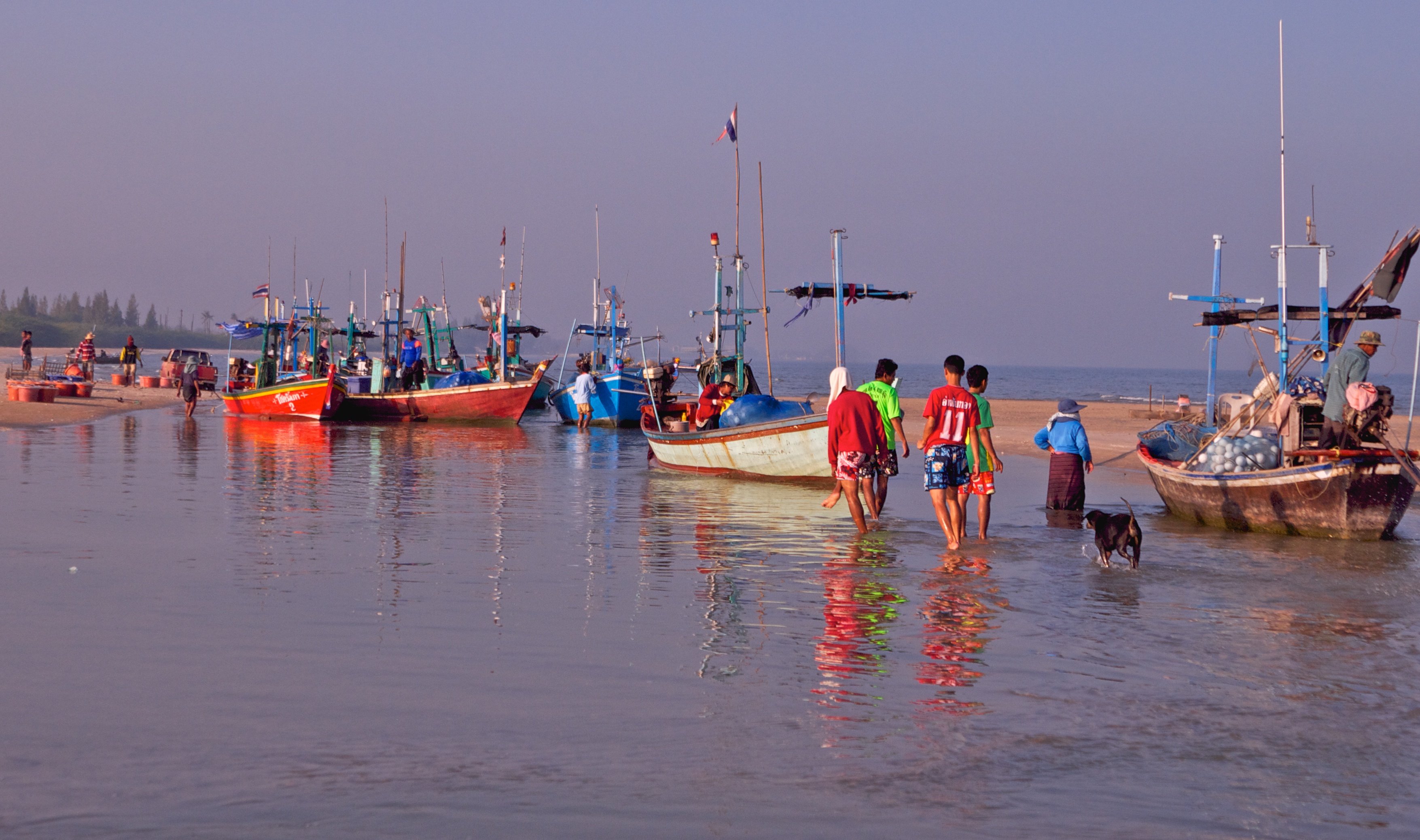Ban Bang Kao is one of my favourite bits of beach and it is a great place to photograph shorebirds which like sand – in fact I can’t think of an easier place to see Malaysian Plover and Sanderling. In addition to birds it is quite atmospheric with fishing boats usually beached pending tides: today, with the tide coming in,the locals had driven their trucks as close to the boats as possible to expedite the unloading of the catch, which appeared to be exclusively squid. It is an ideal place to bring non-birders and today I was accompanied by my wife and son.