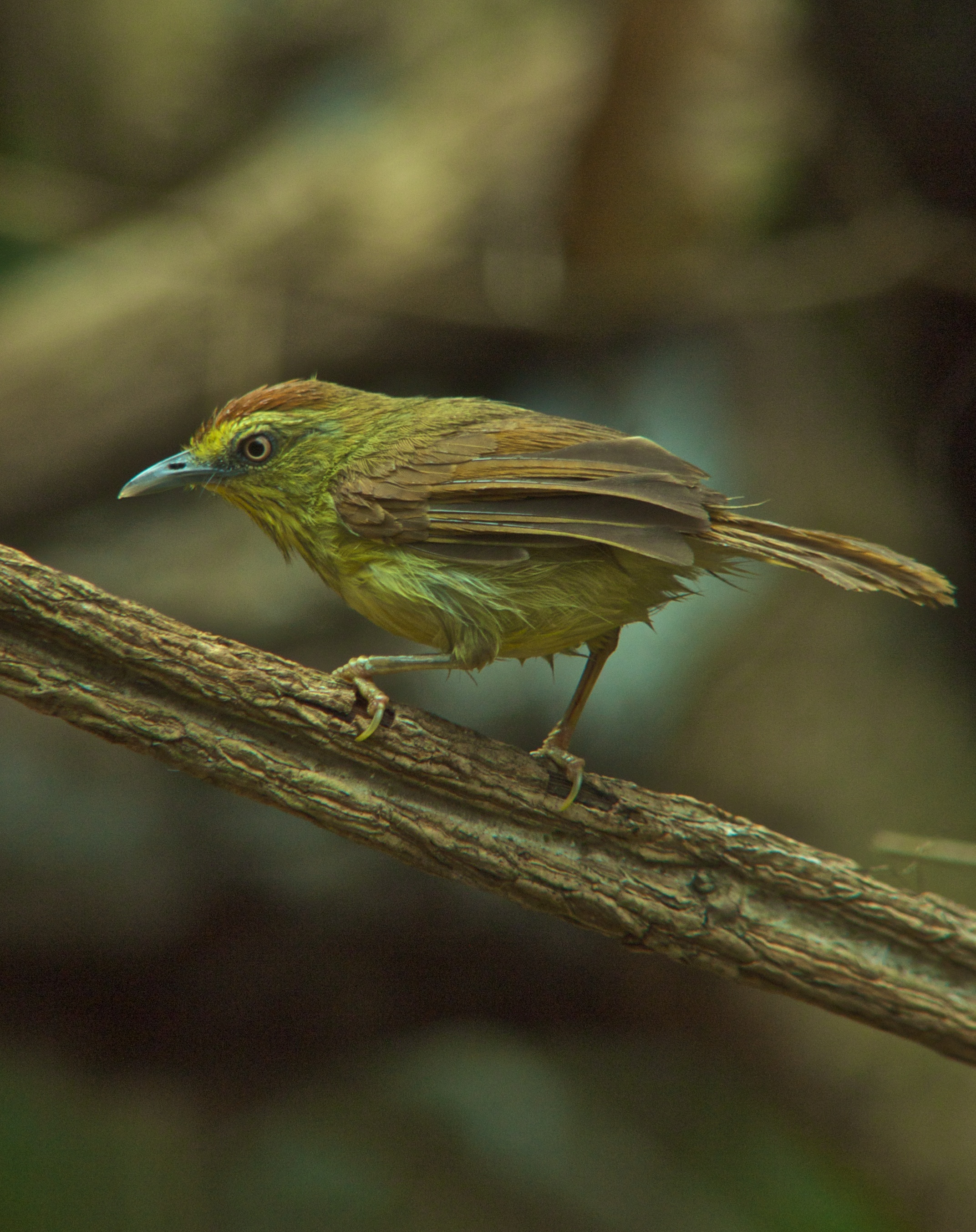 On the way back to the camp we stopped to try for the Tickell’s Brown Hornbill, no sign, and met with with Peter Ericsson and his party. We got onto a malkoha which eventually displayed for long enough to enable identification as a Chestnut-breasted Malkoha, a second lifer for the day. A leaf-warbler next grabbed our attention and the general consensus appeared to be Claudia’s Leaf Warbler. This was on the basis of the flicking action of its wings. Now I didn’t get on it for long enough to see this and since returning home I’ve had a look at Ayuwat’s Blog which has an excellent three part review of the Claudia/Blyth/Davison leaf warbler split. Conclusion: no claims and a better view definitely required.