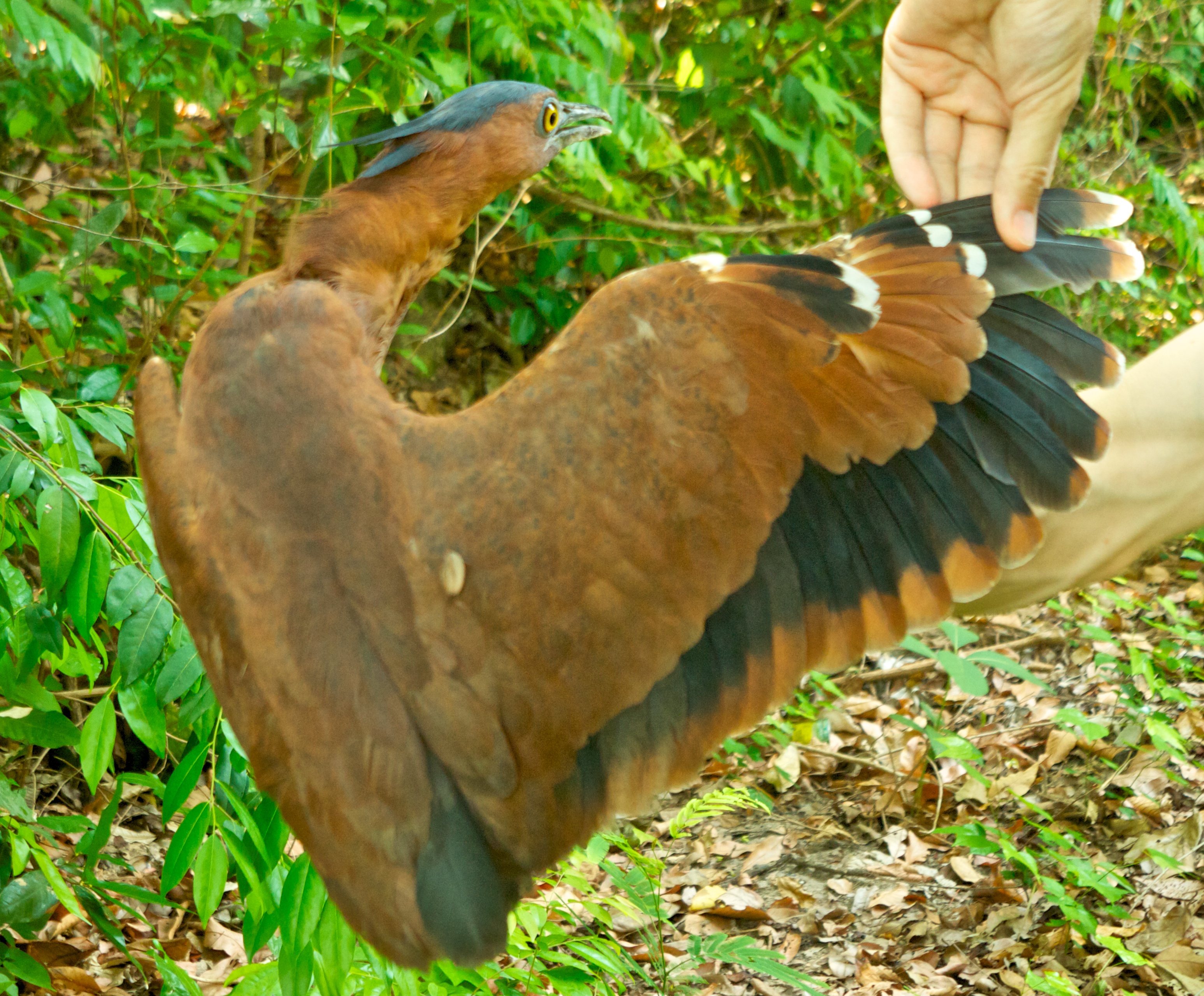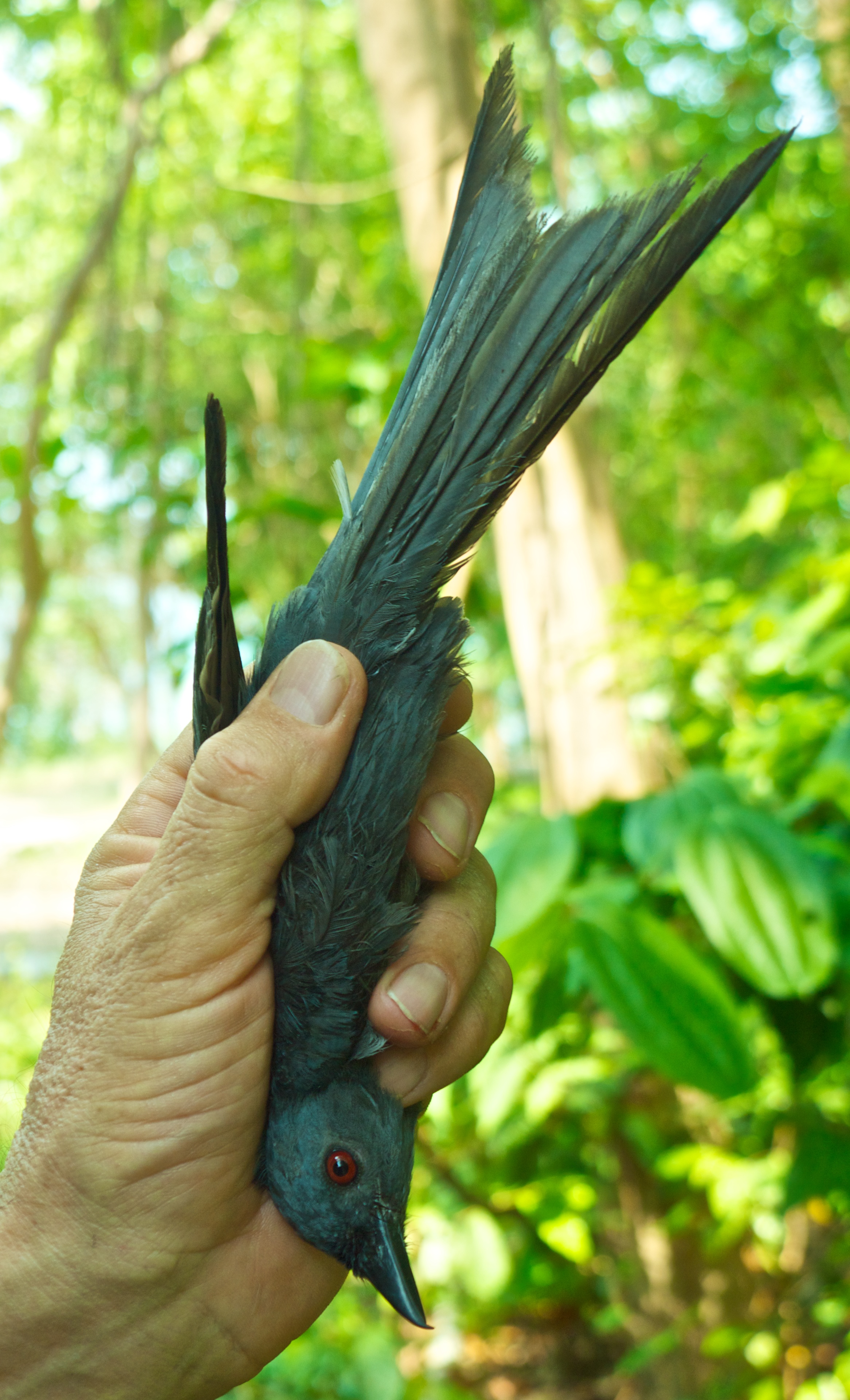 From a birding perspective the highlights of the trapped birds were: a Malayan Night-heron, a Ruddy Kingfisher, Siberian Thrush (3), a White’s Thrush and a number of Eye-browed Thrush, Sakhalin and Pale-legged Leaf Warblers, Eastern Crowned Warbler, a Pallas’s Grasshopper Warbler, a Hodgson’s Hawk Cuckoo, a Himalayan Cuckoo, Asian Drongo Cuckoo, Crow-billed Drongo, an Asian Paradise Flycatcher, a Zappy’s Flycatcher, a Blue and White Flycatcher and a Hainan Flycatcher. These are all migrants.