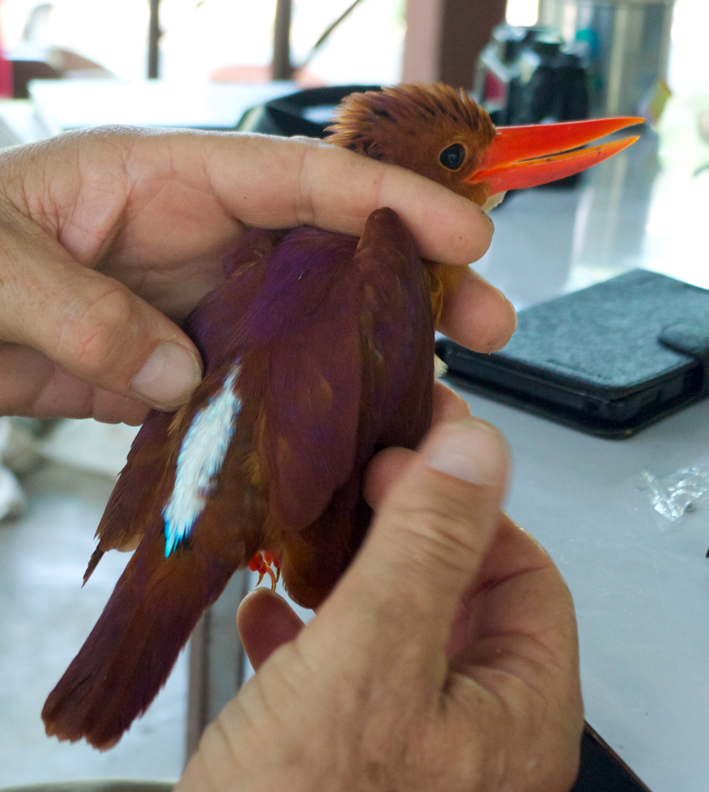 An unexpected benefit of being on a long school break was being able to join Phil Round and Andy Pierce for four days netting and ringing birds on Ko Man Nai during 17 – 22 March 2014. This really was field biology as opposed to birding and for me it was a huge learning opportunity.